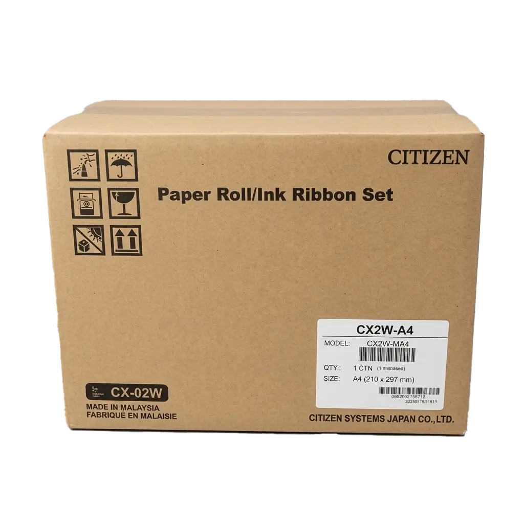 La impresora Citizen CX-02W es conocida por su capacidad de impresión de gran formato y su robustez. Sin embargo, solo con el Consumible Citizen CX2W-MSA4 A4 original podrás replicar la calidad de laboratorio que esperan tus clientes. Este kit específico está diseñado para el formato A4, un tamaño altamente demandado para retratos, certificados, y fotografía artística, asegurando que el papel y el ribbon trabajan en perfecta sintonía con tu equipo.