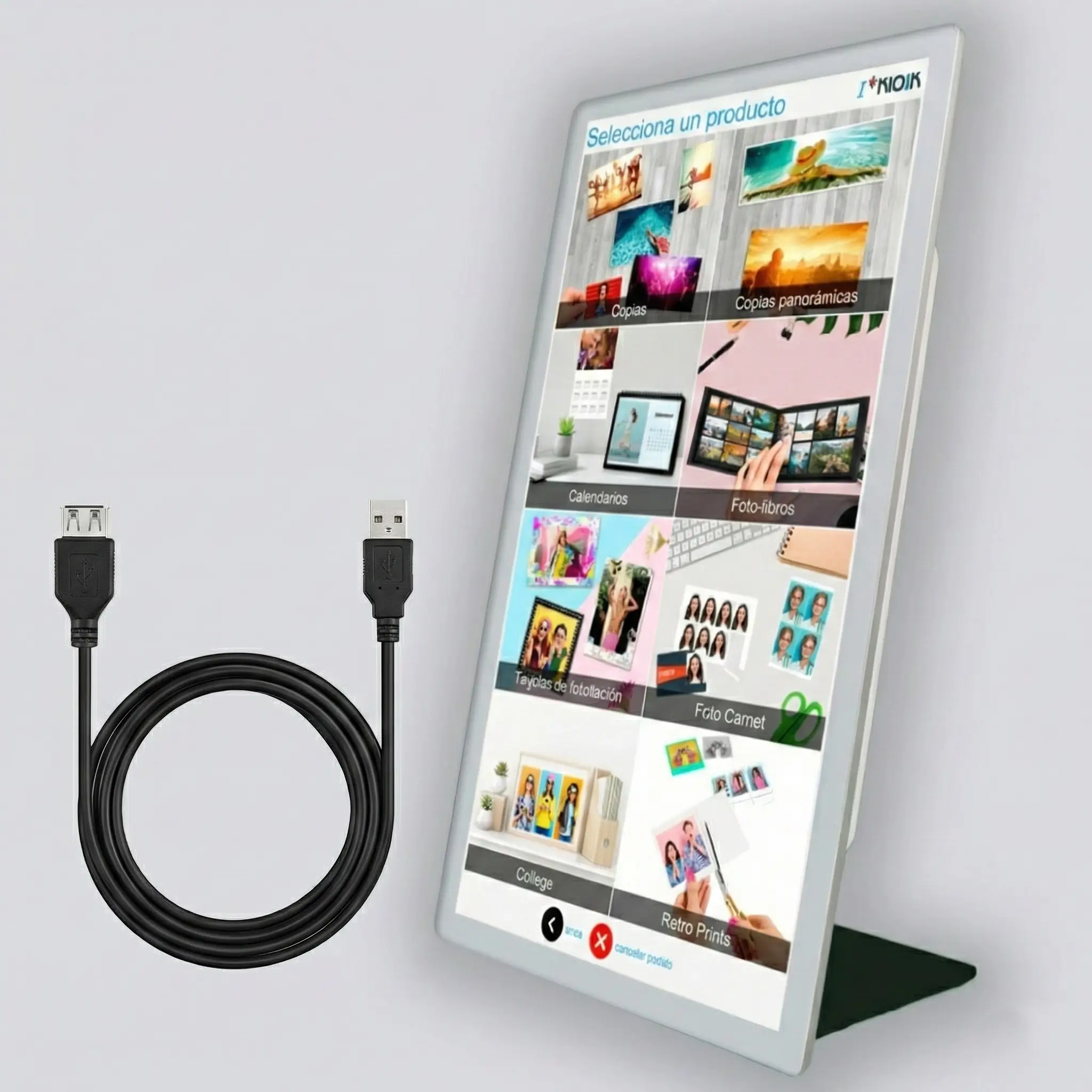 El Kiosco Fotográfico SKS224C es una declaración de intenciones para tu negocio. Con su espectacular pantalla táctil de 23.8 pulgadas (24″), este terminal deja de ser una simple herramienta para convertirse en un imán visual que invita a los clientes a interactuar con sus recuerdos a lo grande.